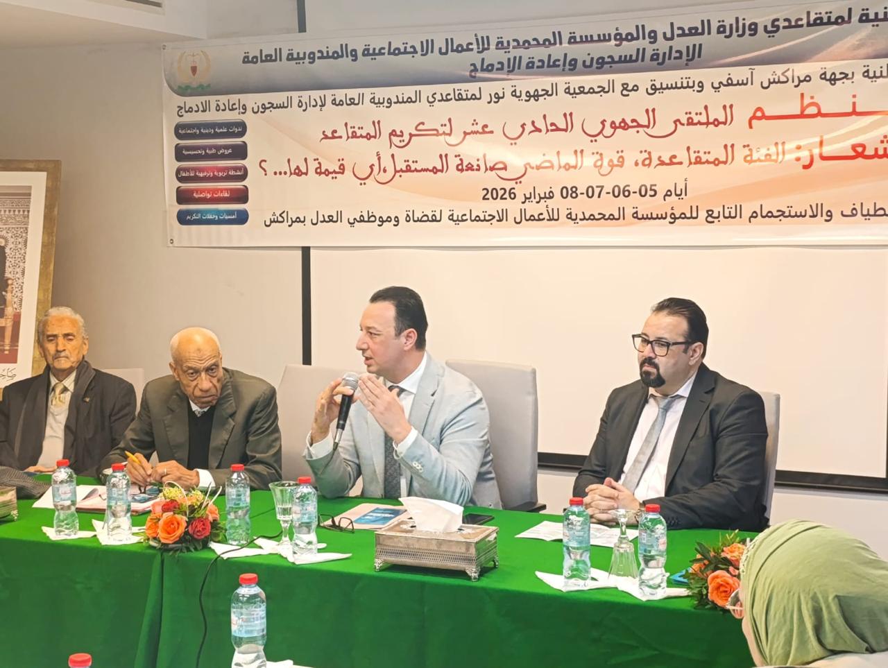 ويُذكر أن هذا الملتقى، المنظم من طرف المكتب الجهوي للجمعية الوطنية لمتقاعدي وزارة العدل بجهة مراكش آسفي، بشراكة مع المؤسسة المحمدية والمندوبية العامة لإدارة السجون وإعادة الإدماج، عرف برنامجًا متنوعًا شمل ندوات علمية ودينية، لقاءات تواصلية، عروضًا طبية وتحسيسية، وأنشطة تربوية وترفيهية، إضافة إلى لحظات تكريمية احتفاءً بالمتقاعدين.