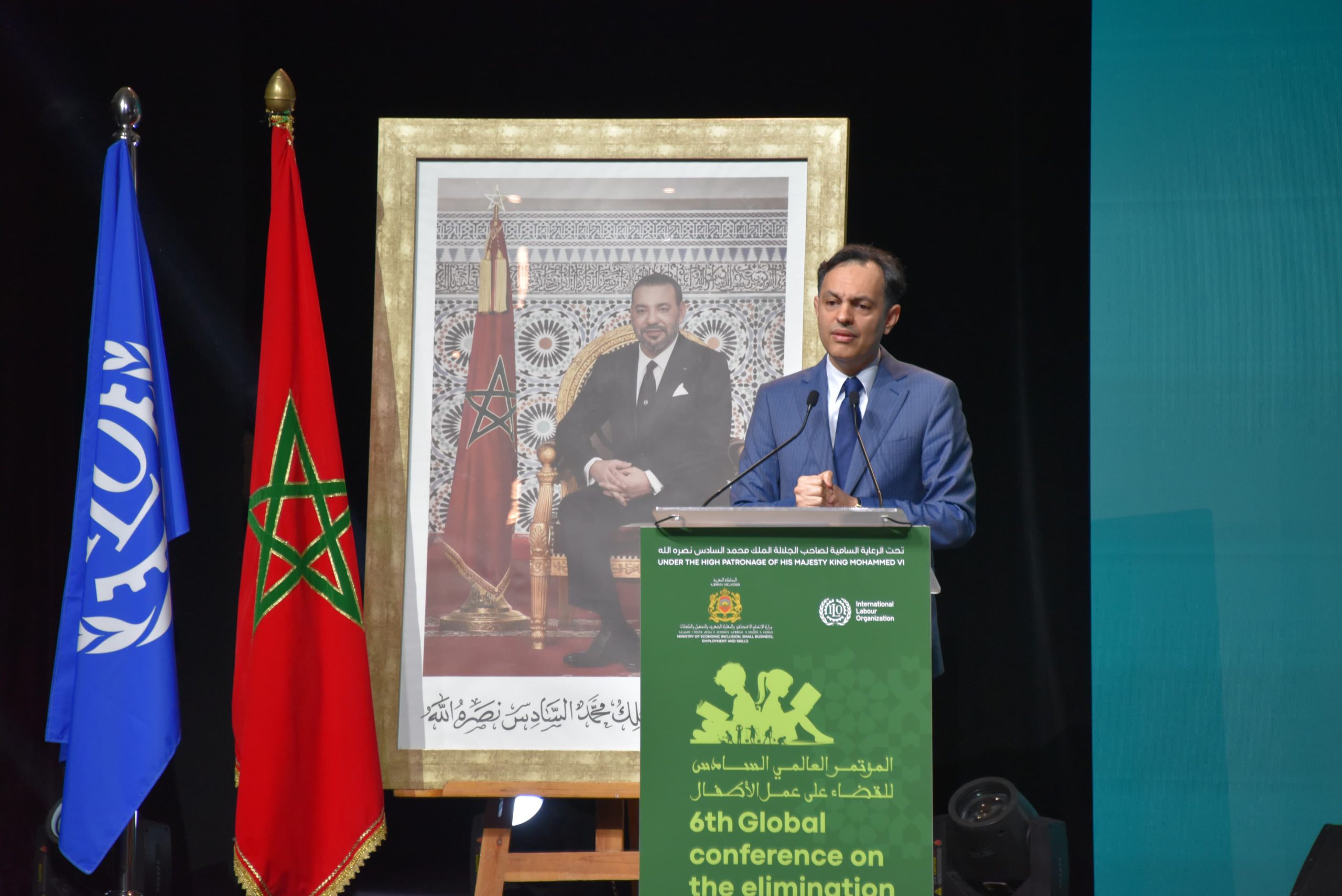 وأوضح الوزير، في كلمة خلال الجلسة الافتتاحية لأشغال المؤتمر العالمي السادس للقضاء على عمل الأطفال، أن المشروع المجتمعي للمملكة، وفق الرؤية الملكية، يقوم على اعتبار الطفولة رأس مال قيمي وأساساً لبناء مجتمع يكرس حقوق الإنسان ويرسخ مبادئ العدالة الاجتماعية.